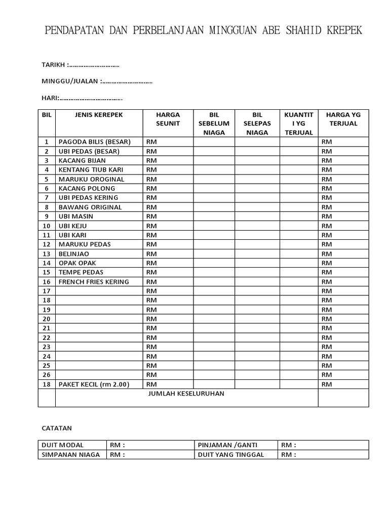 Pendapatan Dan Perbelanjaan Mingguan Abe Shahid Krepek Pdf
